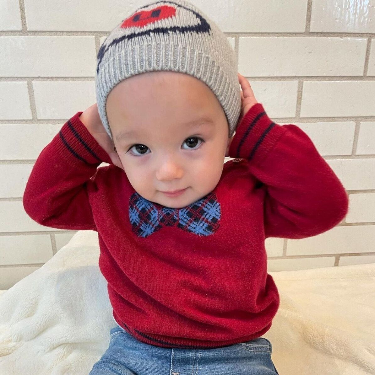 こちらは帽子やジーンズまで全身GAPのコーディネート。Hiromi Brooksさんのお子さんは1歳だそうで、こちらの赤いニットをバッチリ着こなしていますよね♪ 冬らしい色合いもとっても可愛い冬コーデですね。
