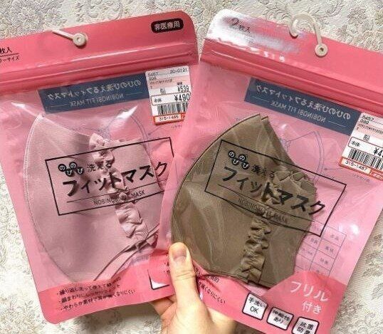 shihoさんが購入したのはこちらの2色のフリル付きフィットマスク。2枚入りで490円だったそうです。リーズナブルなお値段も嬉しいですね!