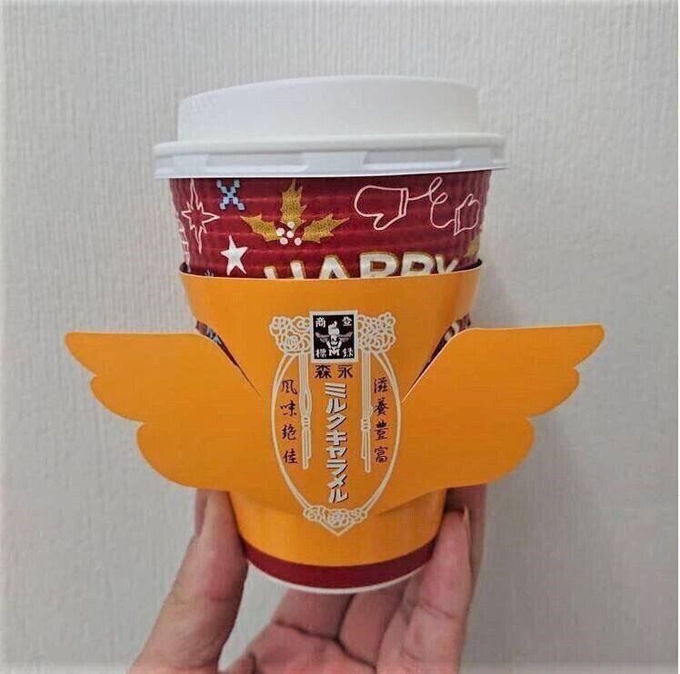 ファミリーマートと森永がコラボした「ミルクキャラメルラテ」。購入したkobutaさんは甘党で、とても好みでおいしかったんだそうですよ。おなじみのお菓子がホットドリンクになっているだけでも試してみたいですよね。森永エンゼルマークの羽根型が付いたドリンクホルダーもかわいい!