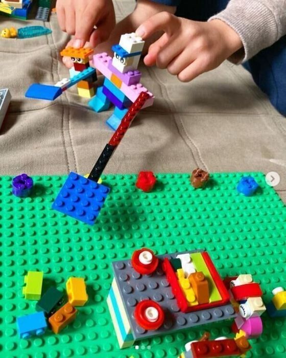 レゴブロックは家や動物など作り方のマニュアルがありますが、自由に組み合わせて自分だけのオリジナルを作るのも楽しいですよね。上の画像では、下の方におせち料理を楽しむ人、上の方で凧あげを楽しむ人を作ったんだそうですよ。どちらも上手にパーツを組み合わせていますよね。