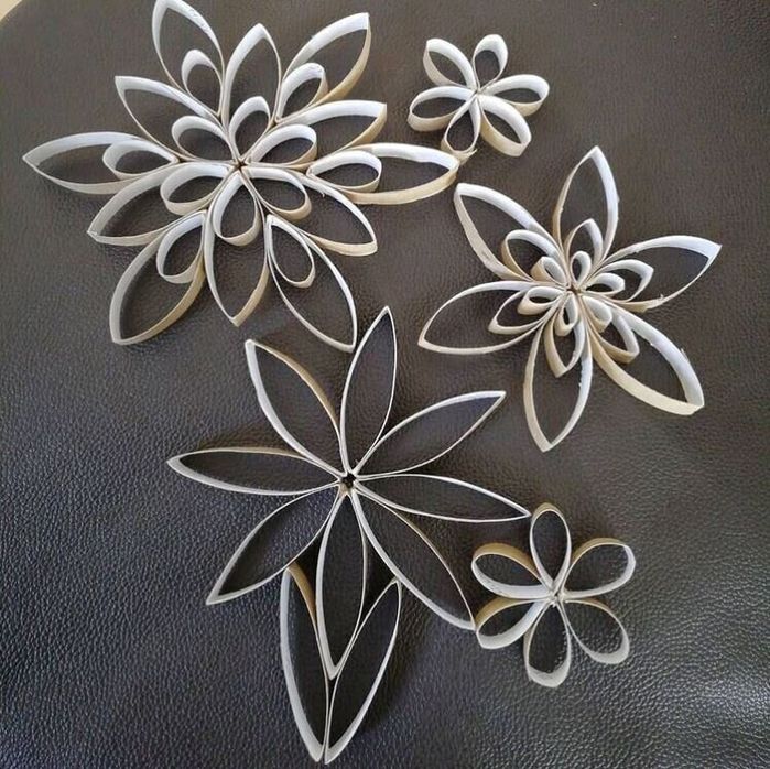 たくさんの素敵な花模様を作ったanriさん。材料にしている厚紙はなんと…トイレットペーパーの芯なんだそうです!トイレットペーパの芯は、もともと丸くカーブがついているので、上手に利用するとこんなに素敵な工作ができるのですね。色を付ければインテリアにもなりそう!