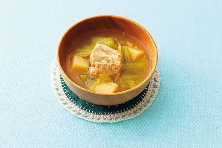 鮭とキャベツのみそ汁【大人2人+子ども1人分・幼児食レシピ】
