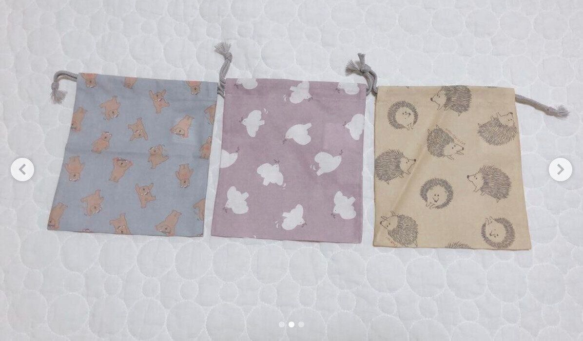 huri_3kさんは3枚セット890円の巾着を発見!デザインは、ハリネズミやくまなど子ども達が喜びそうな動物ばかり。1枚300円以下というプチプラが嬉しいですね。3枚セットなのでお友達とシェアしてみるのも良いかも!
