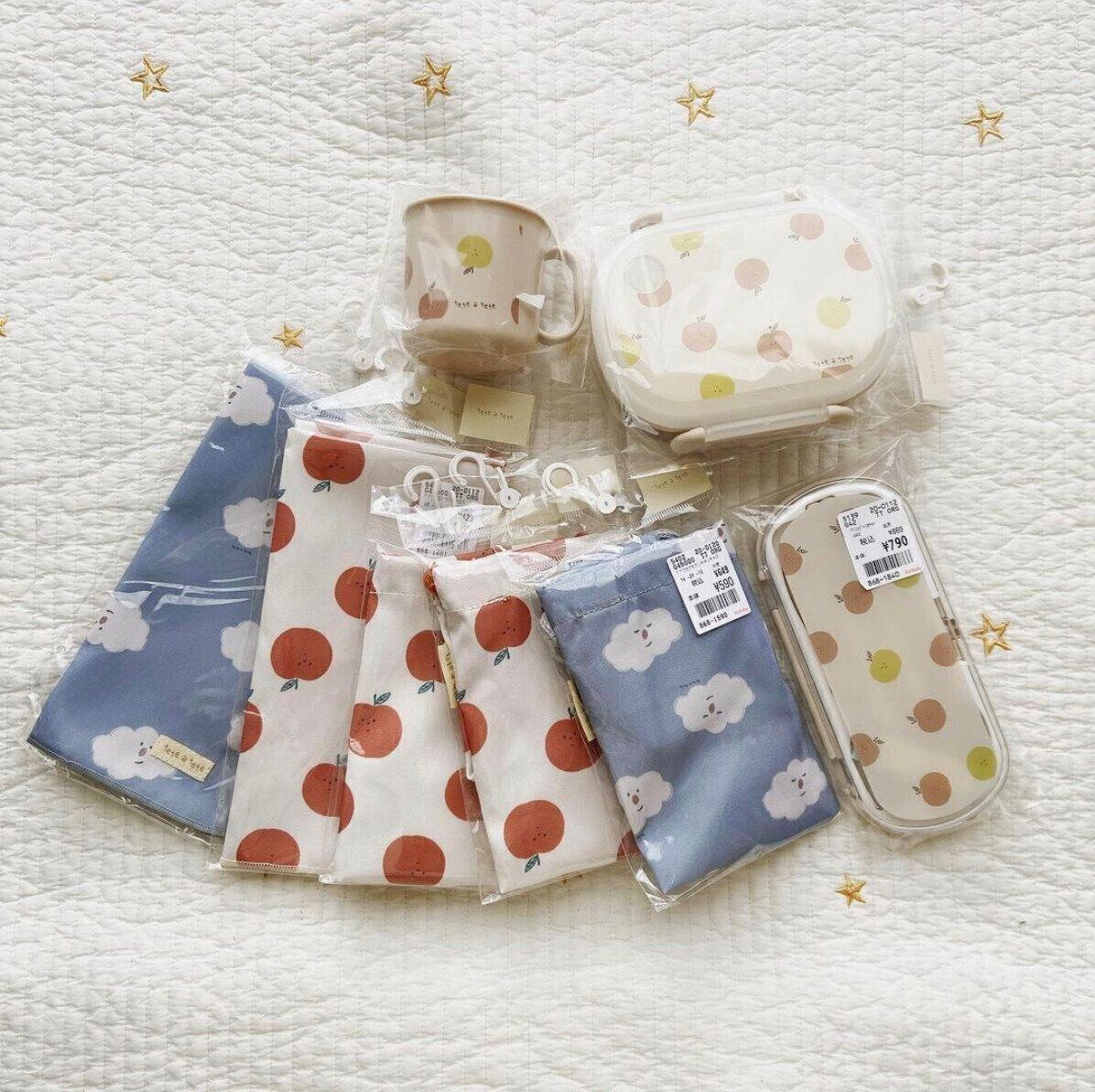 きなこさんは、こちらのゆるいイラストがかわいいお弁当箱や袋などをゲット。コップもお箸ケースも一式同じデザインで揃えられるのは嬉しいですね。子ども達のお弁当タイムも楽しくなりそう。