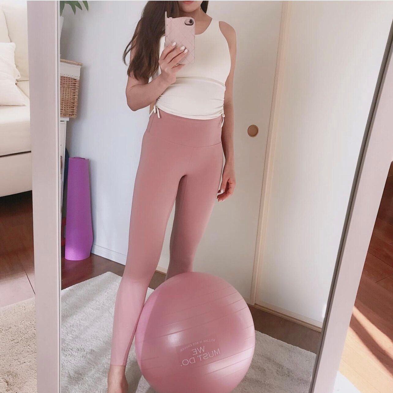 モノトーンインテリア好きのmono_homesさんは、グレーカラーのヨガマットを購入。外出も難しいご時世ですが、ヨガやストレッチならおうちでも手軽にできますね。