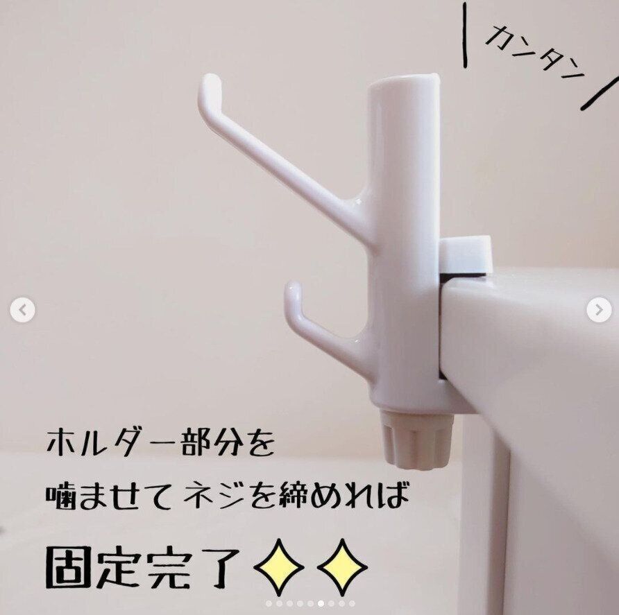 ムギタさんはこちらのタオルハンガーを購入。いろいろ試してみた結果、セリアのタオルハンガーが一番使いやすいとのこと。首が回るのと、タオルが掛けやすい形なのがポイントだそう。コレは便利ですね!