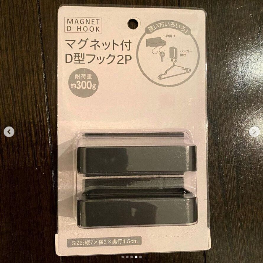 こちらはマグネット付きのフック。tapionokurashiさんは洗濯機の横に付けて、ブラシとハンガーを掛けるのに使っているそう。マグネットで簡単に付けられるところも便利ですね!
