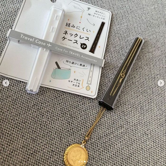 メグさんはこちらのネックレスケースを購入。2個入りで100円なんだそう。フックに引っかけてぐるっとまわせば収納できるんだとか。これならバッグの中に入れても絡まなくて良いですね。