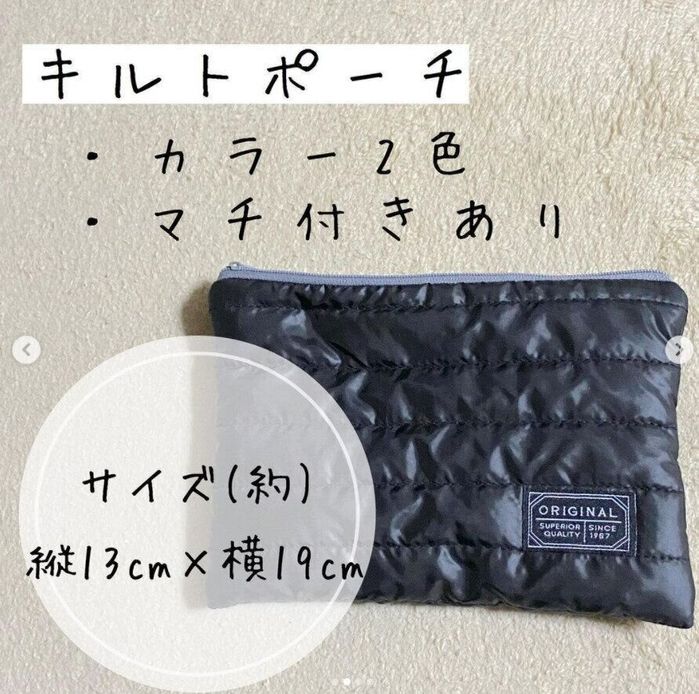 haru‎︎︎︎︎︎さんはこちらのキルトポーチをゲット!マチ有りと無しの2タイプがあるようで、こちらは無しのタイプなんだとか。カラーは2色展開だそう。シンプルなデザインでオシャレですね。