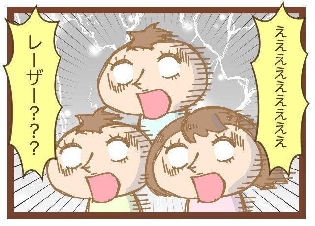 レーザー受けてきたんだよ~と何気なく話すと、三つ子の表情がみるみる変わります(笑)