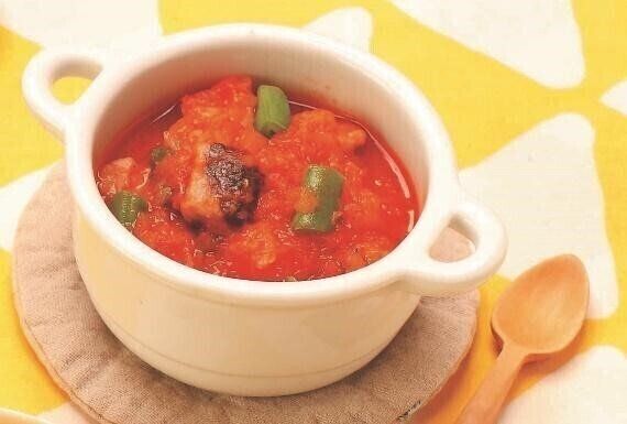 小さめに切った具と汁けがまとまって、スプーンですくって食べやすいメニューです。