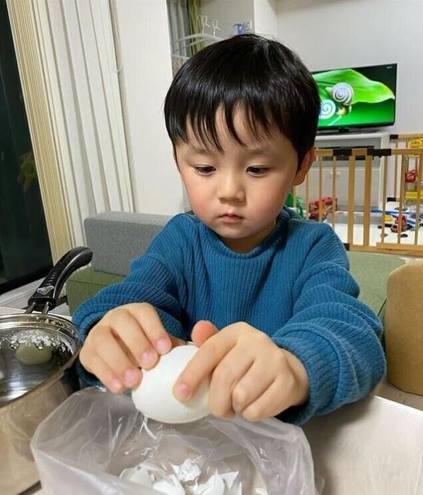 とっても真剣な表情でゆで卵をむいてくれている息子さん。中身を壊さないようにむく殻むきは意外と難しかったそうですが、すごく集中して取り組んでいますね!ゆで卵をどんなお料理に使おうか?と話しながらすれば、親子で楽しめそうですよね♪