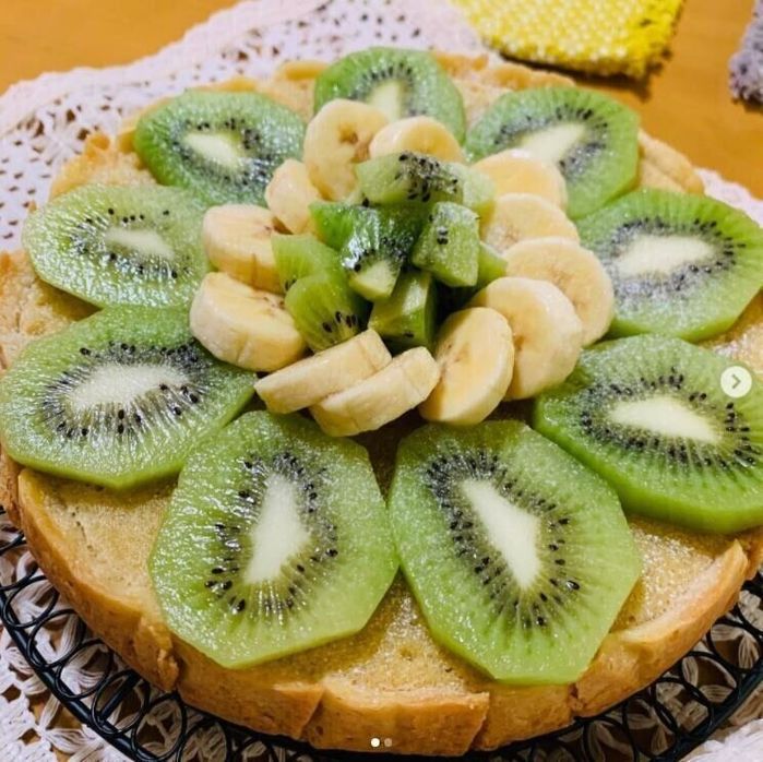 こちらの画像のフルーツタルトは、娘さんがキウイとバナナを盛り付けたんだそうですよ。お店のケーキのように、とてもきれいでおいしそうですよね。好きなフルーツを好きなように盛り付けることができるので、親子でワイワイ準備して楽しんで!