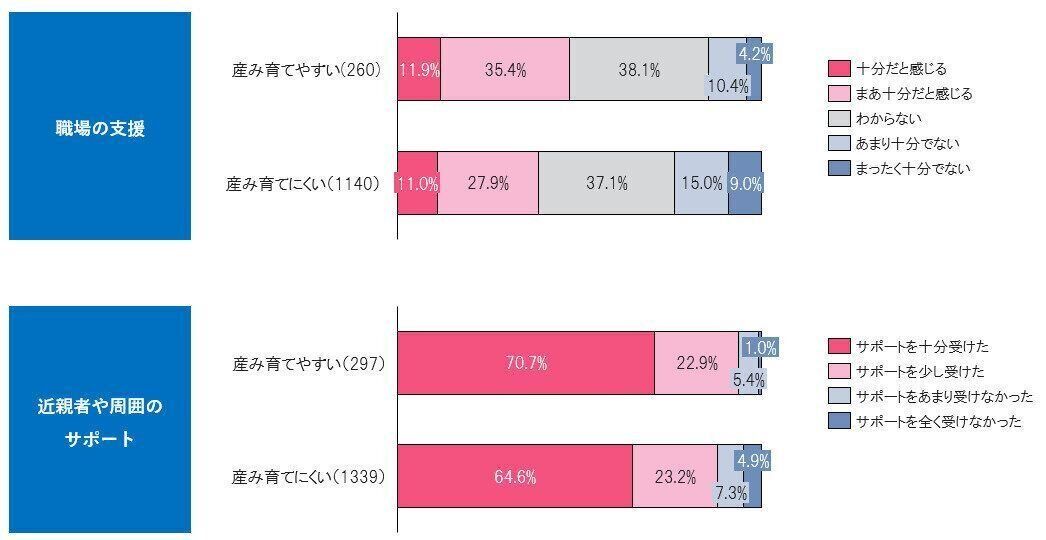 育児支援環境別 産み育てやすい、産み育てにくいと感じる人の違い