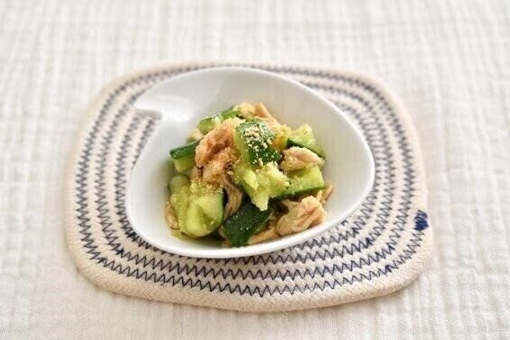 パサパサしやすい鶏ささ身肉も、きゅうりとあえればしっとりして食べやすく。ごまの香りが食欲をそそるレシピです。
