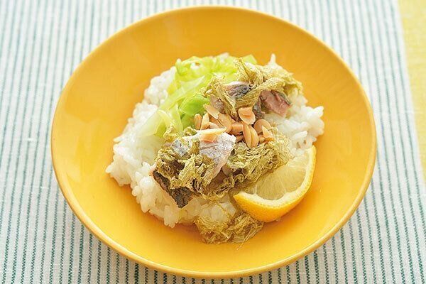3. 昆布巻きあじとキャベツののっけ丼【大人2人+子ども1人分・幼児食レシピ】