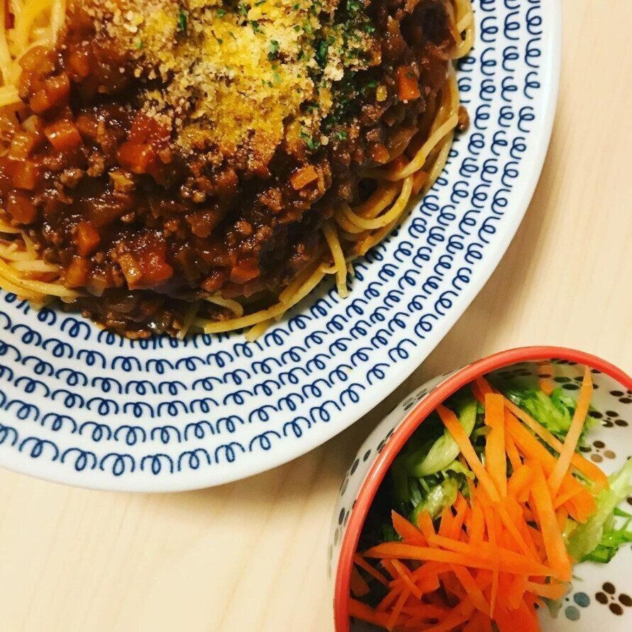 aiandmaruさんはカレーの残りをパスタにアレンジ!ボロネーゼにしてみたんだそう。チーズもたっぷりかかっていて美味しそうですね。コレは食べて見たくなりますね。