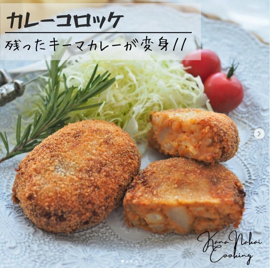 中井さんはキーマカレーをアレンジ!マッシュしたじゃがいもと合わせてコロッケにしたそう。コロッケにしっかり味が付いているのでソースは無くても良いんだとか。じゃがいものマッシュは少し形が残るくらいがおすすめだそうですよ。