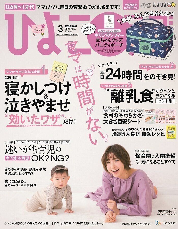 『ひよこクラブ』2021年3月号には、離乳食作りに使うととくに時短になる、【かぼちゃ・ブロッコリー・ほうれん草・鶏ひき肉・里いも】を使った「赤ちゃんに使える!冷凍5大食材 時短・離乳食レシピ」を掲載しています。