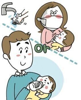 ママが風邪をひいていても、母乳を通して赤ちゃんに感染することはありません。乳腺炎(にゅうせんえん)など乳房のトラブルを防ぐためにも、無理のない範囲で母乳を飲ませましょう。ママは授乳する前にしっかり手を洗い、マスクを着用して。鼻と口をしっかり覆うことが大切です。ママが直接授乳するのがつらいときは搾乳した母乳を使い、パパなどママ以外の人が授乳しても。(黒澤照喜先生)