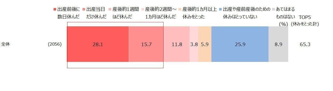 出産当日や前後の「数日間だけ休む」が大多数。「育休を取っていない」人も4人に1人