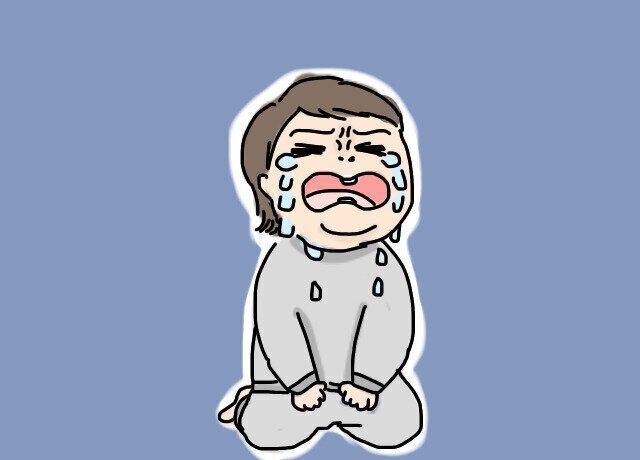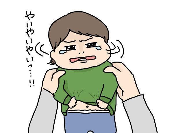 泣いて顔を擦り付けて、服をめくろうとしてきました。