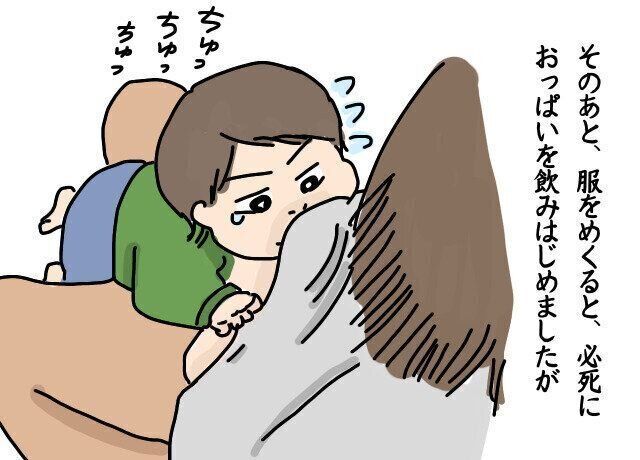 夕方、普段だったらおっぱいが飲める時間帯です。