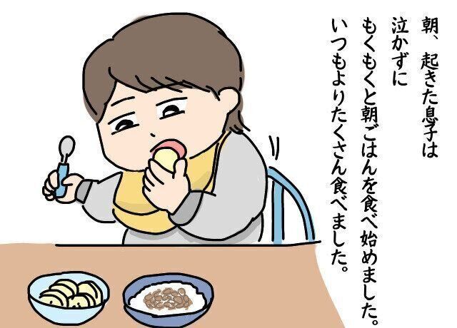 息子はしばらく泣いた後、諦めたのか夕食を食べてくれました。