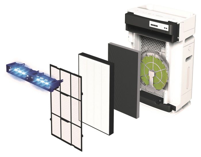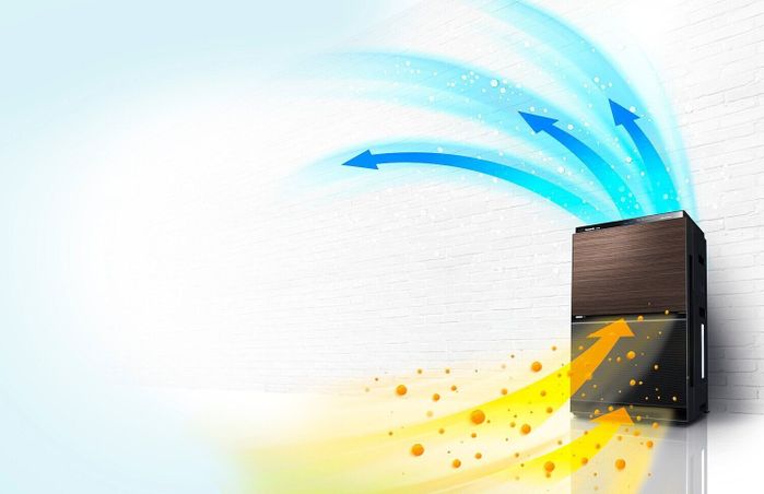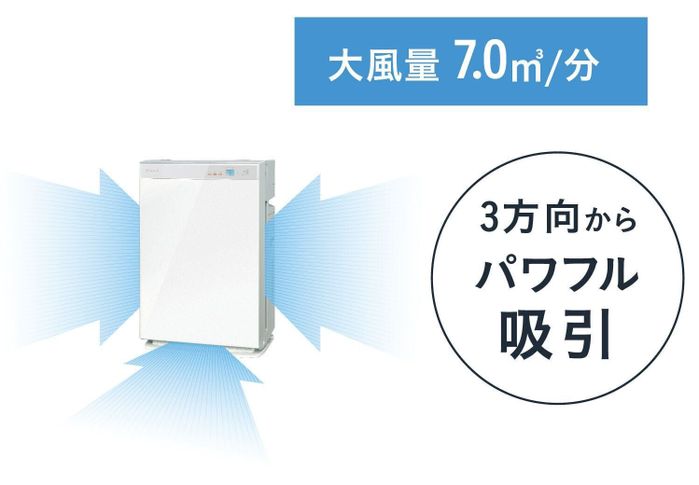 周囲の空気を3方向からパワフルに吸い込み、高性能なセンサーがPM2.5やホコリ、ニオイをトリプル検知して素早く空気を綺麗にします。