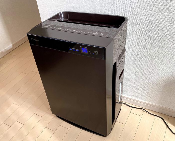 1つ目がダイキンの「加湿ストリーマ空気清浄機MCK70X」。シンプルな外観はインテリア馴染みが良く、空気清浄は31畳まで、加湿は18畳まで対応しています。