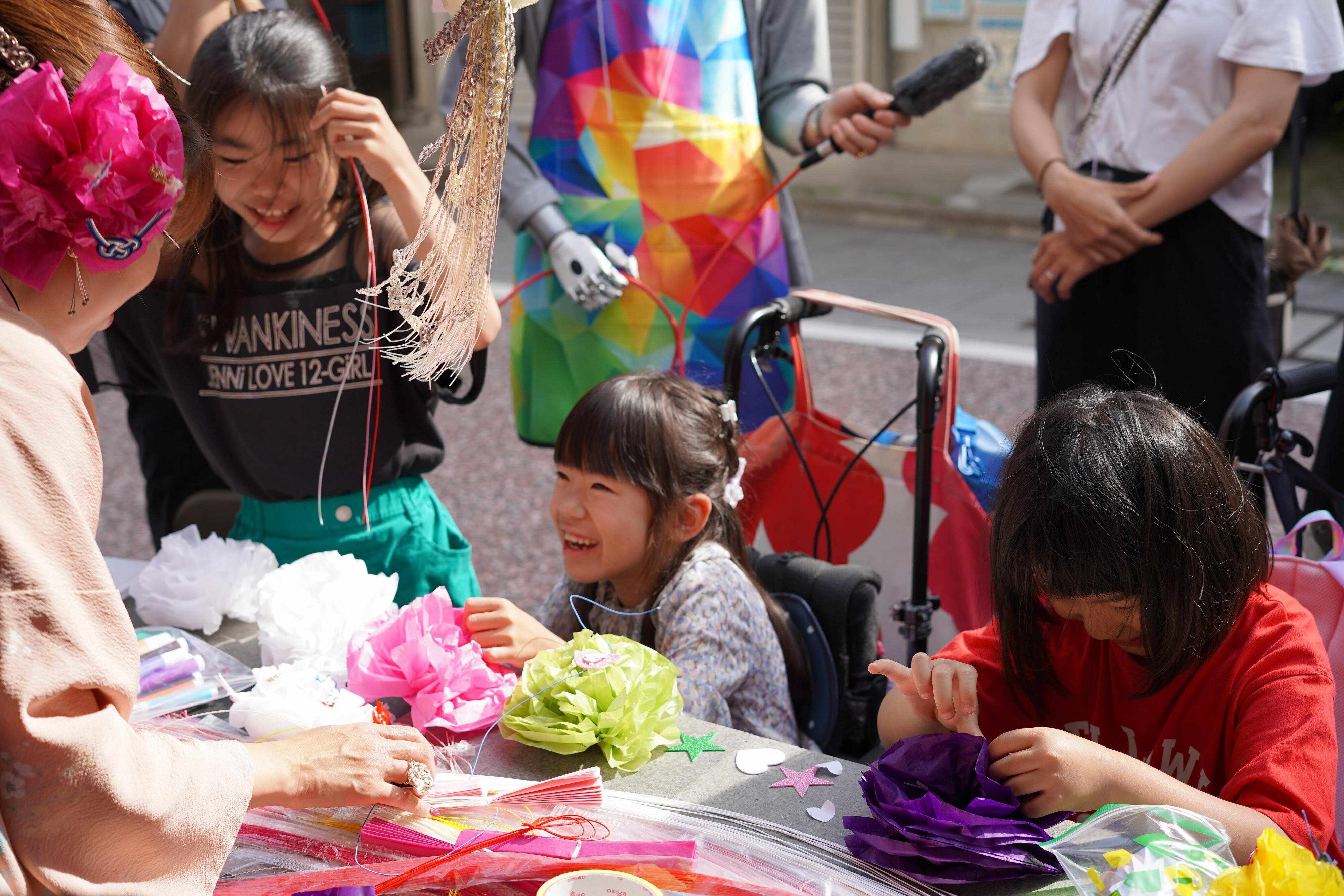 チャレンジドキッズたちがハンドメイド制作のレッスンを受けている様子。 -