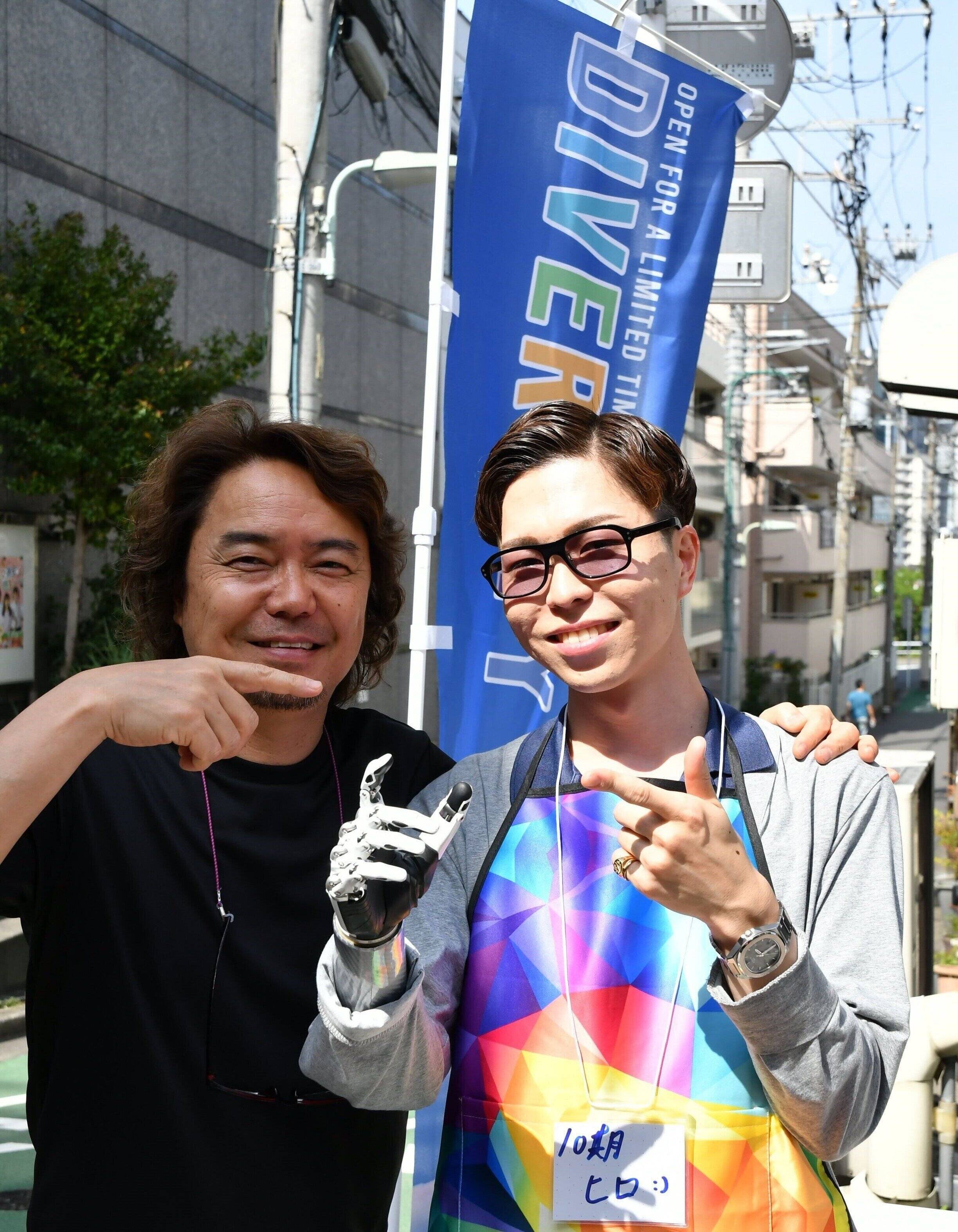 義手モデルのやまもとくにひろさん(写真右)と大倉さん(写真左)。 -