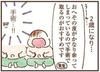 4. 3歳の双子が生まれたときのおへそはシューマイサイズ?! 将来のことを考えて、2歳で臍ヘルニアの手術を決意【双子のママ・漫画家いよかん】