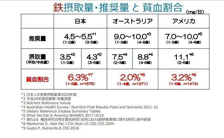 3. 乳幼児の脳の発達には、鉄が不可欠。しかし日本の子どもの鉄の摂取量は、アメリカの半分以下【専門家】