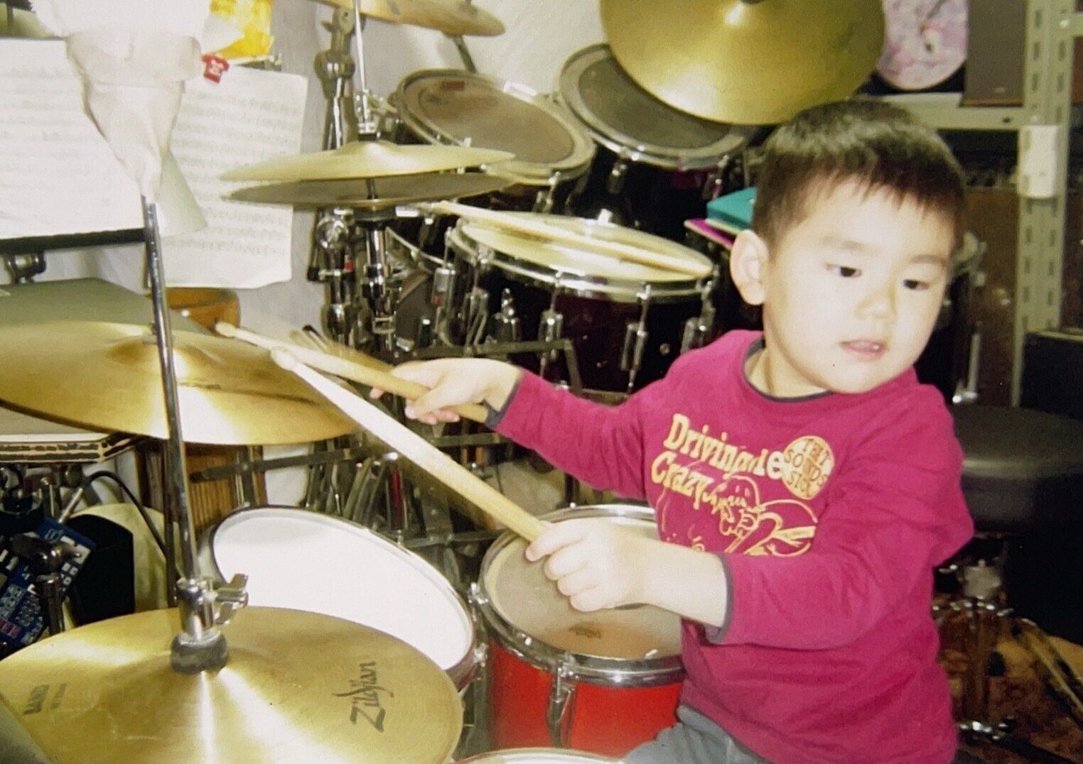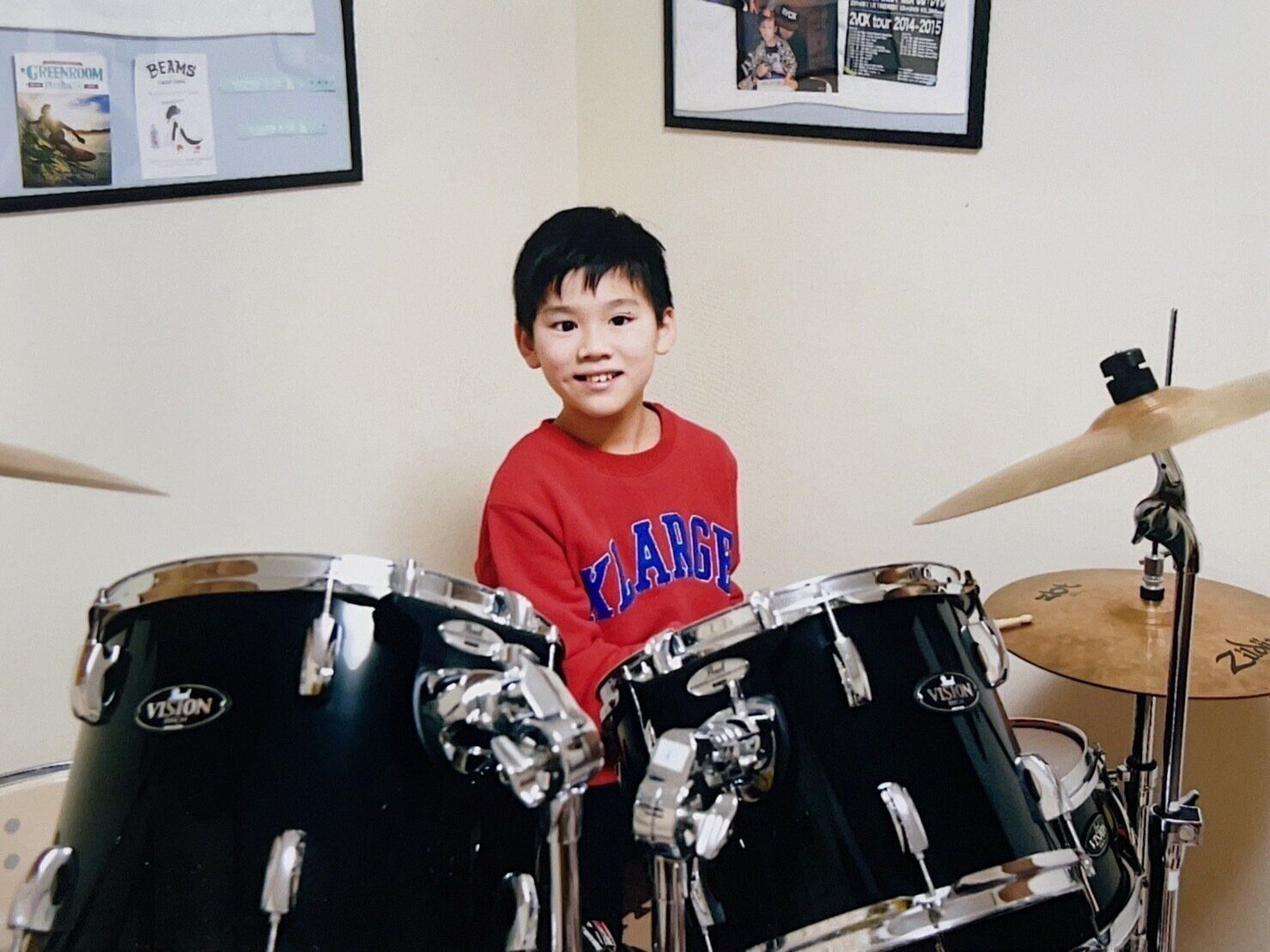自宅を改装し、防音室を作ってドラムの練習。響希さん11歳のころ。 -