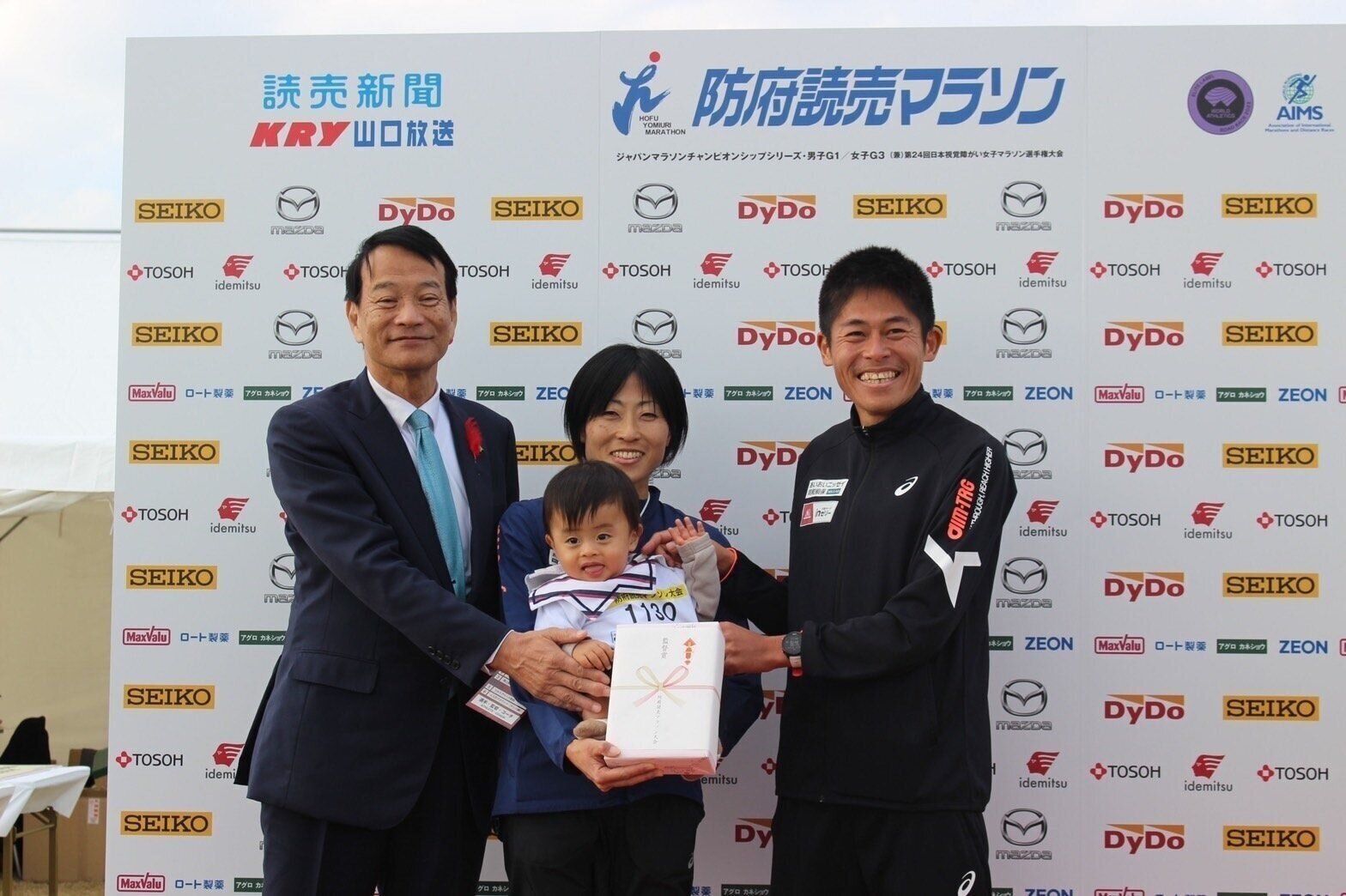 「第54回防府読売マラソン大会」優勝後、防府市・池田市長と共に。 -