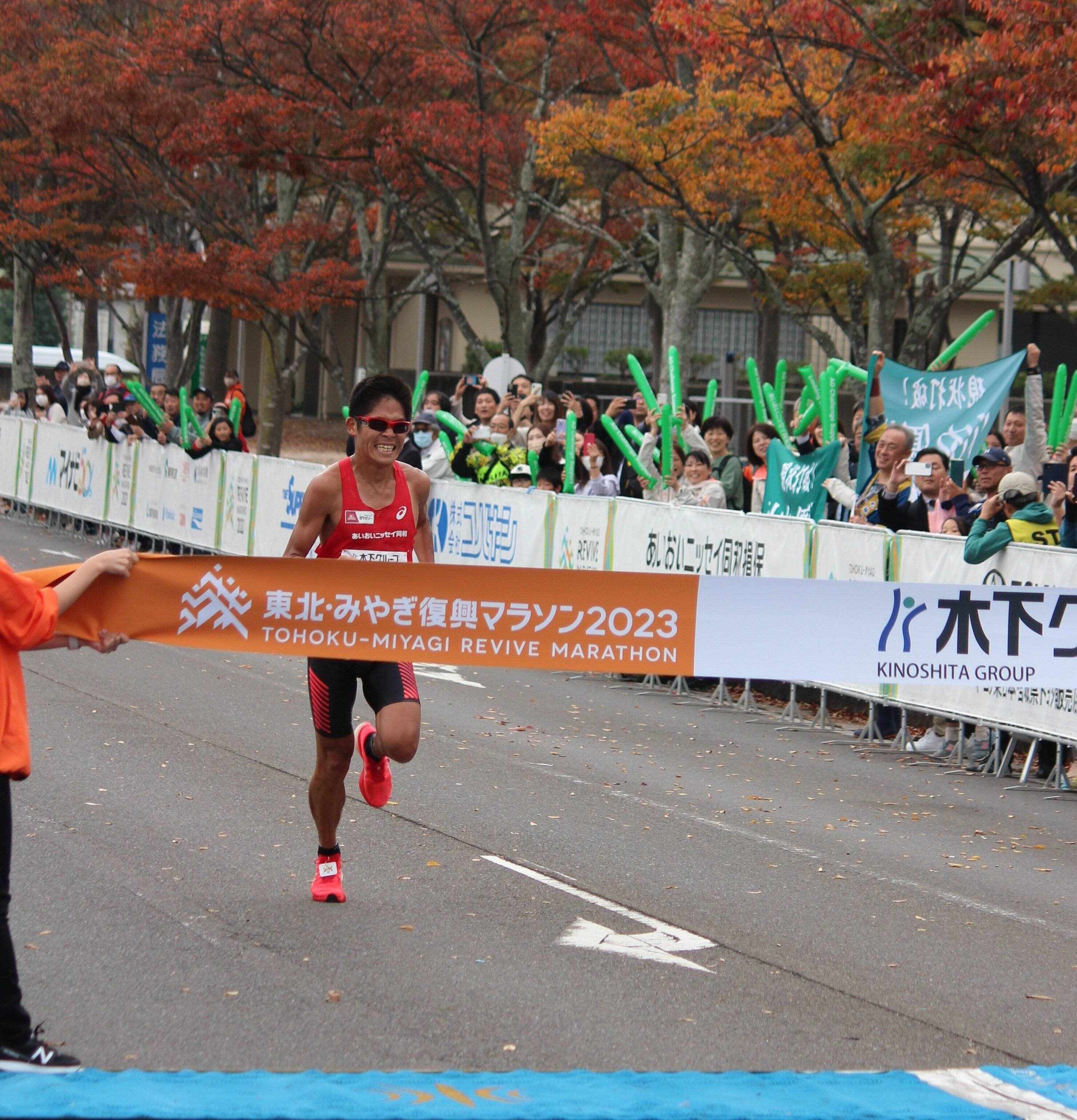 「東北・みやぎ復興マラソン2023」で優勝した優輝さん。これからも多くの大会で優勝する姿を楽しみにしています。 -