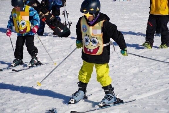 スキーのレッスンを受ける息子。楽しんでくれてよかった! -