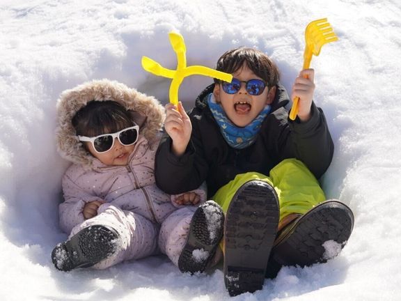 初めて触れる雪に大興奮の二人。ずっと楽しそうでした。 -