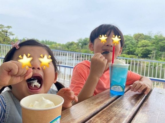 眺望を楽しむ、きょうだい二人の後ろ姿 -