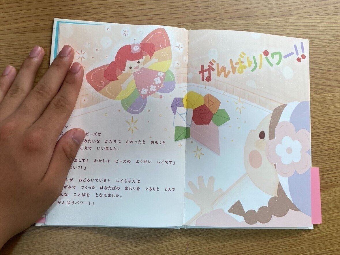 虹色の妖精が“がんばりパワー!”で「わたし」を元気にするシーン。このページを読むと日向さんも元気になるそう。(写真提供/大西優子さん) -