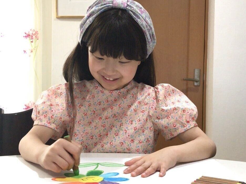 わかちゃんは病室でも自宅でも、とても楽しそうに絵を描いていました。写真は10歳のとき。(写真提供/大西優子さん) -