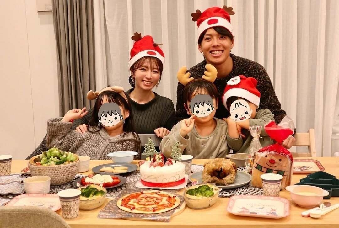 2023年、子どもが3人だったときのクリスマスの様子。(紺野あさ美さんInstagramより) -