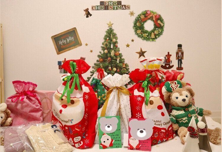 去年までは年齢的に本物のツリーは子どもが倒してしまうのではと購入に踏み切れず...。ウォールステッカーのツリーの近くにプレゼントを用意しました! -