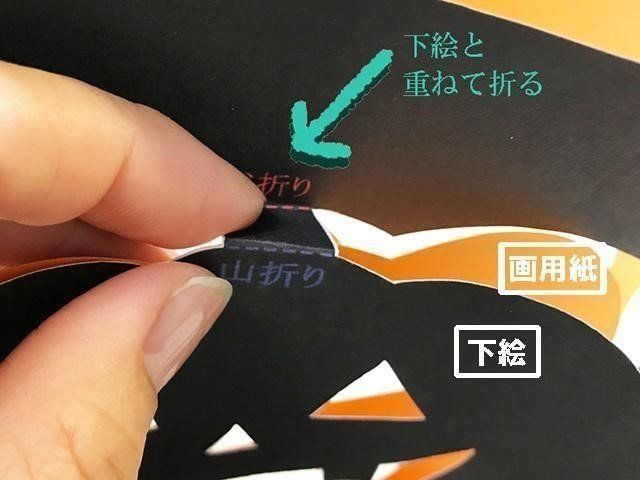 下絵と画用紙を重ねて折っている状態 (c)鶴岡さゆり -