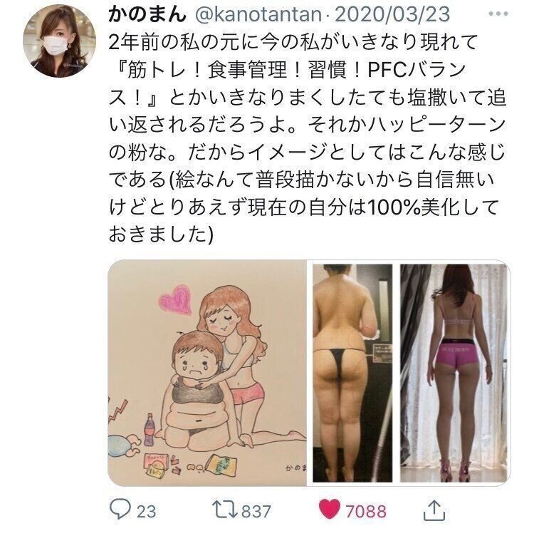 【整形級ビフォー&アフターのかのまん】産後大嫌いな筋トレを始めたときのこと・脳内豚との闘い赤ちゃん・育児 -