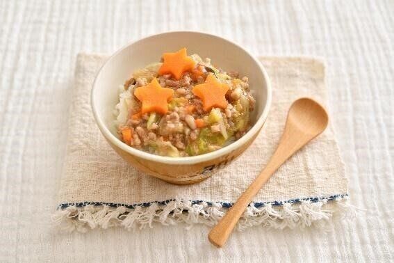 3. ちぎり白菜ときのこのあんかけ丼【大人2人+子ども1人分・幼児食1才代レシピ】