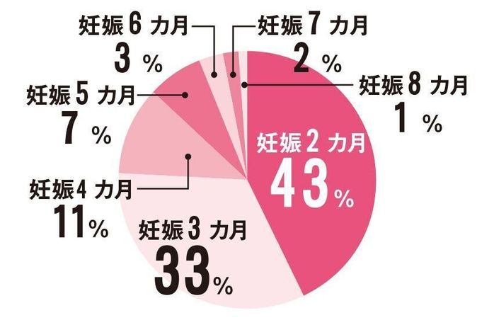 7割以上の人が、妊娠3ヶ月までに職場に報告をしているという結果に。