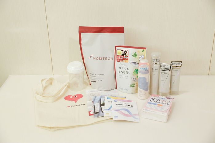 ユニ・チャーム「ソフィ 妊活タイミングをチェックできるおりものシート」をはじめ、男性用のプロテイン、妊活にぜひ取り入れたい亜鉛、葉酸を含んだ出汁、デリケートゾーンケア商品など盛りだくさんの内容に、参加者の皆さんも大喜びでした。