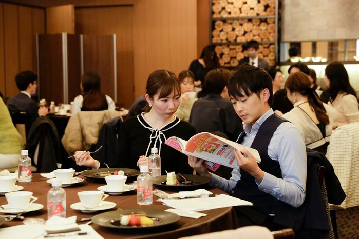 トークイベントや講演をじっくり聞いたあとは、お楽しみのカフェタイム。八芳園自慢のケーキと飲み物でゆっくりとくつろいでいただきました。